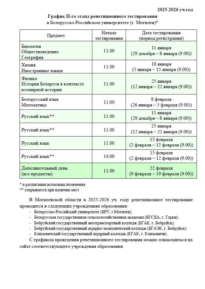 Регистрация на репетиционное тестирование начинается до 10.00 первого дня регистрации, а заканчивается в 9.00 последнего